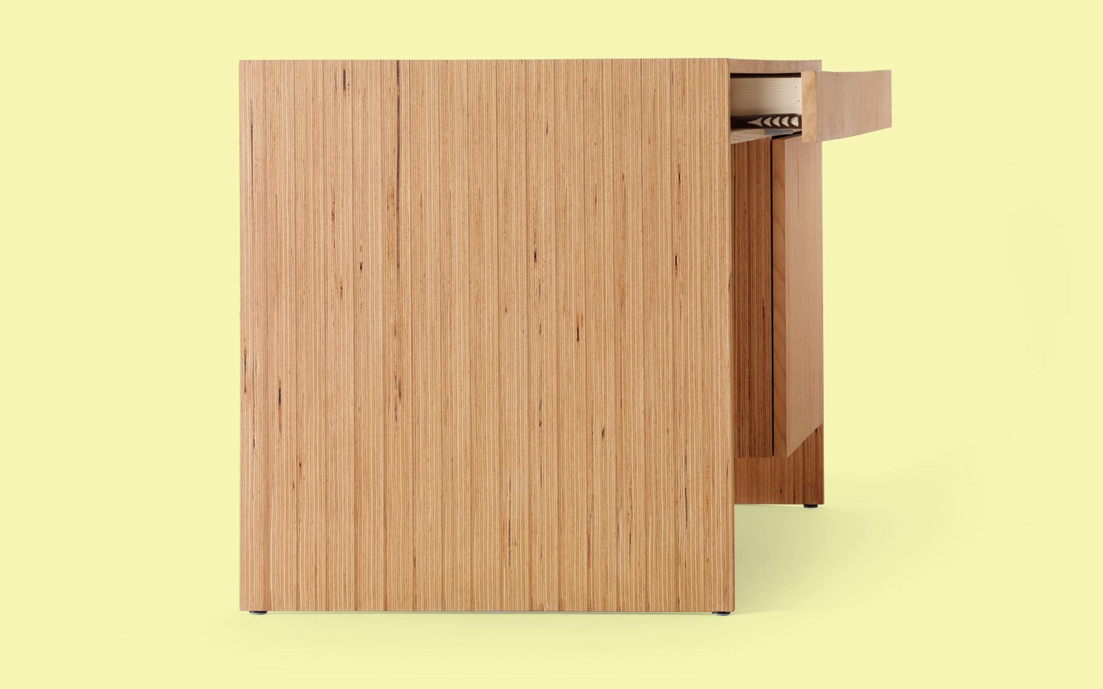 Sfogliando “Domus”, ho notato la pubblicità del “BauBuche panel”, e mi sono fatto inviare un campione. Il prodotto mi era piaciuto molto, spingendomi a trovare l’occasione per sperimentarlo. Ho pensato ad uno scrittoio per mia figlia che da tempo lo richiedeva. Trovato il rivenditore, siamo andati ad acquistare il pannello, che misura cm 400 X cm 68 x 2 cm di spessore, da queste dimensioni sono state ricavate le misure dell’oggetto, per avere il minimo sfrido e possa entrare nella piccola camera di mia figlia.